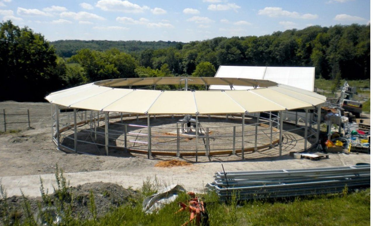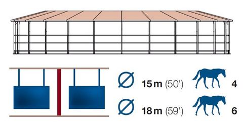 Home >> Horse Walkers >> Ground-Standing Horse Walkers >> Ground-Standing Horse Walker with partial roof type ECO